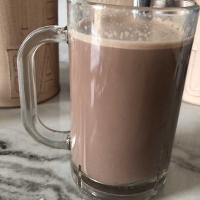 Dencow cokelat panas atau es.