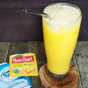 Nutrisari dan susu krimer dicampur es.